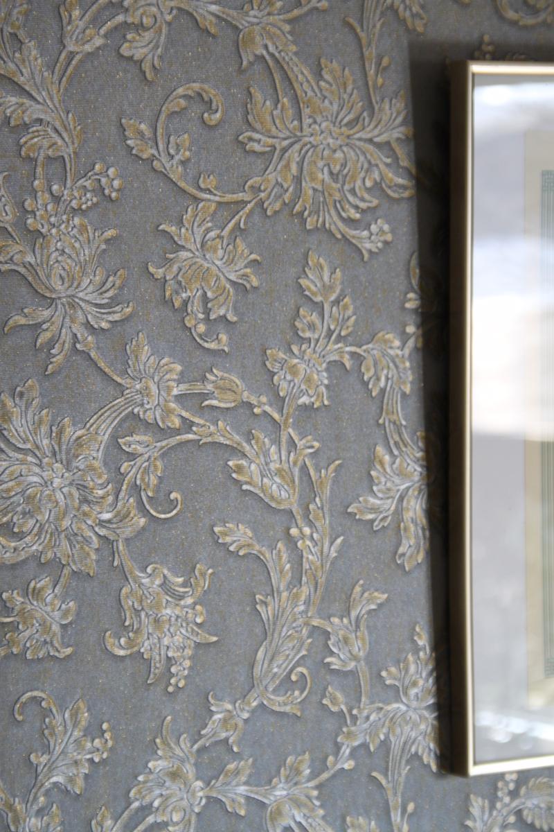 Die Gestaltung eines Schlafzimmers mit einer italienischen Design Tapete mit zarten Rankmotiven wirkt klassisch und edel.